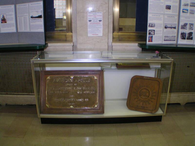 Lower Left: This is the original 'Builder's Plate' from Sun's S.S. American Apollo launched on July 22, 1970