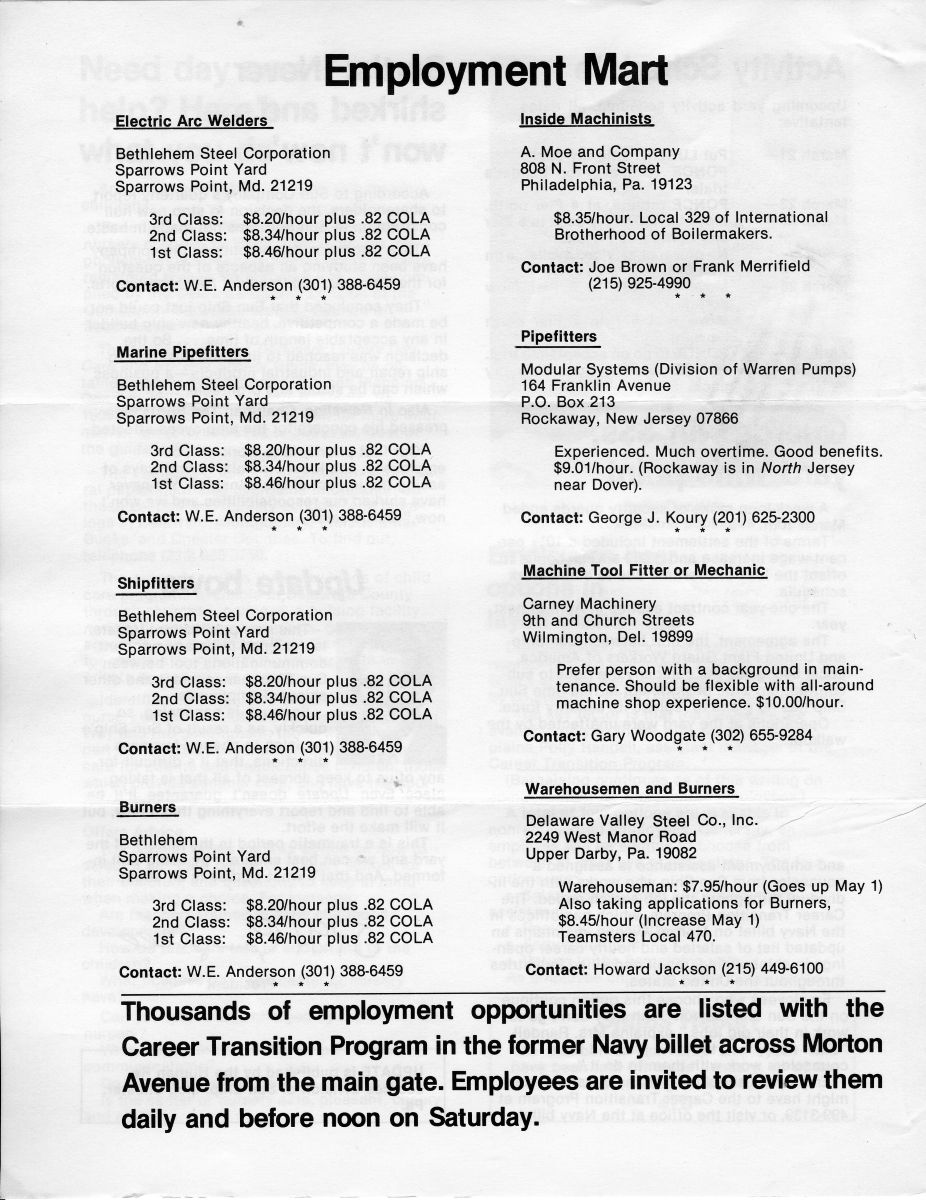 "Update is designed to be an important communications tool between Sun Ship management and other shipyard employees…This is a traumatic period in the history of the yard and we can best endure it by being well informed. And that's what Update is all about" (See 'Update Bows-Issue 3/20 for futher comment)